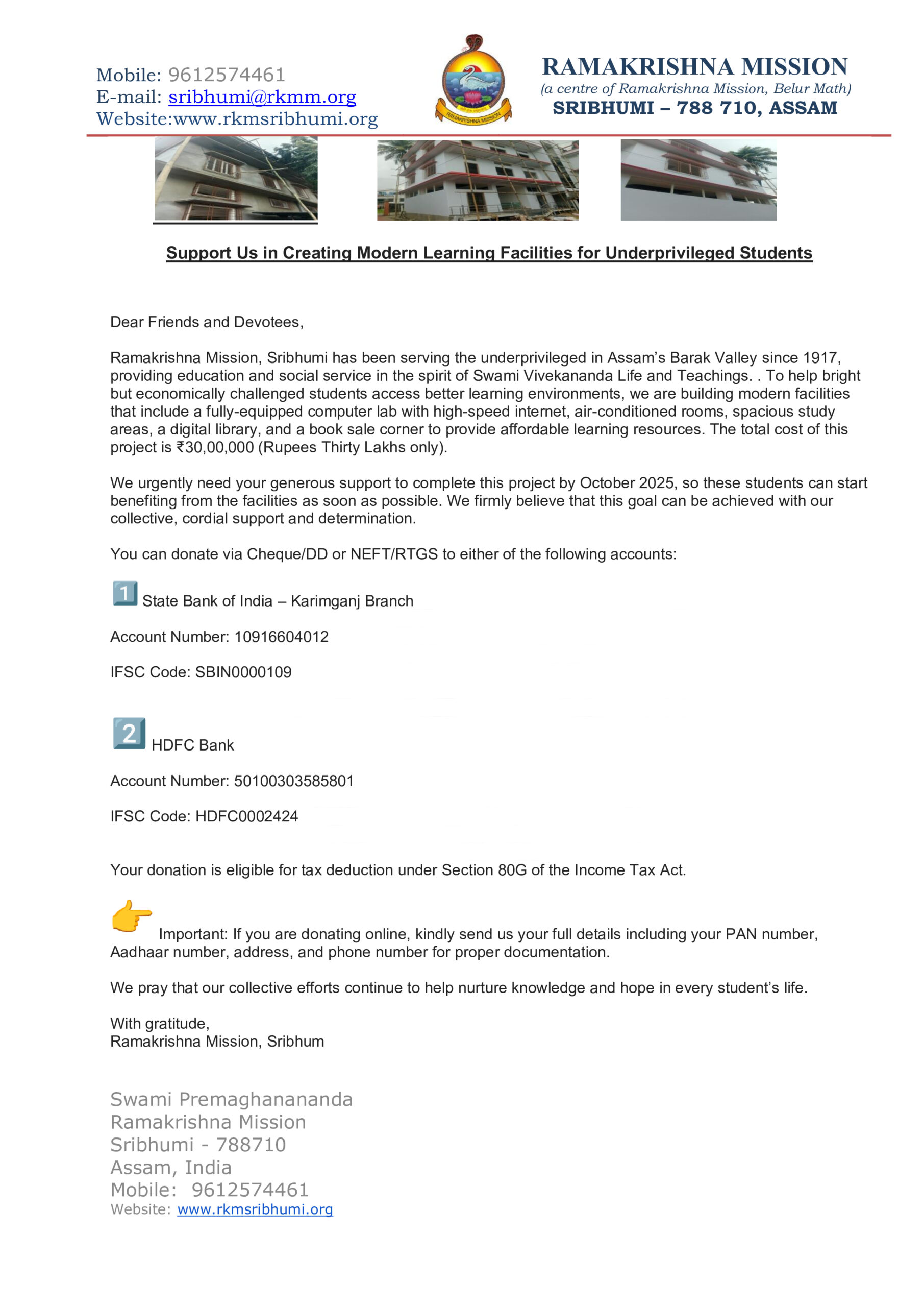 [8:50 PM, 9/9/2025] Br Vedagamyachaitanya: Computer Center Project Proposal – Ramakrishna Mission, Sribhum, Assam